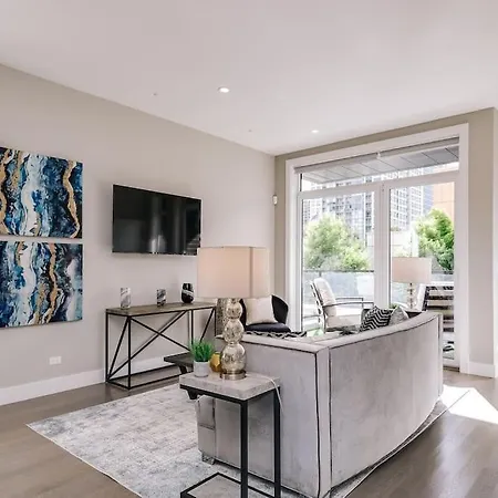 New Construction Building In River North villa includes a fully furnished kitchen with tea and coffee making facilities, a fridge, and a kitchenware, allowing guests to prepare their own meals. Guests can dine at The Goddess and the Grocer just a 6-minute walk from the Chicago property. Clark/Division subway station is situated 0.5 miles away, and the nearest bus station, Chicago & Hudson, is within easy reach of the property.
